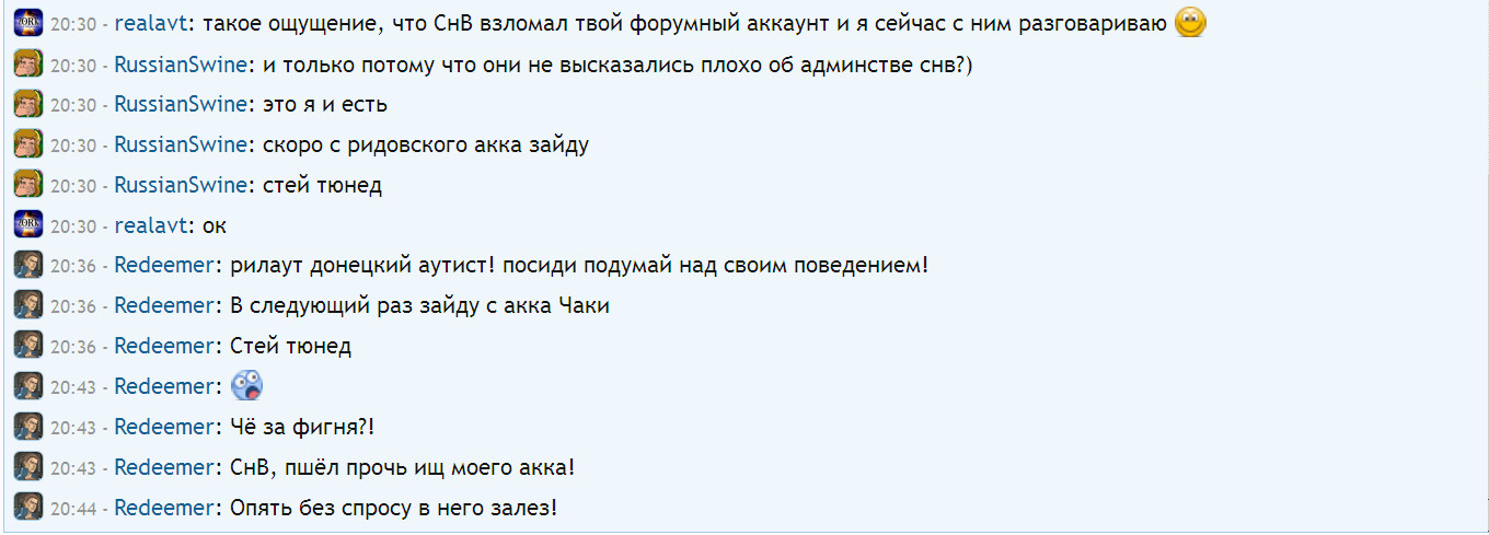Дика я забанил (в чате) только за то, что благодаря CнВ в чате создана атмосфера абсолютной безнаказанности за любые оскорбления кого-либо